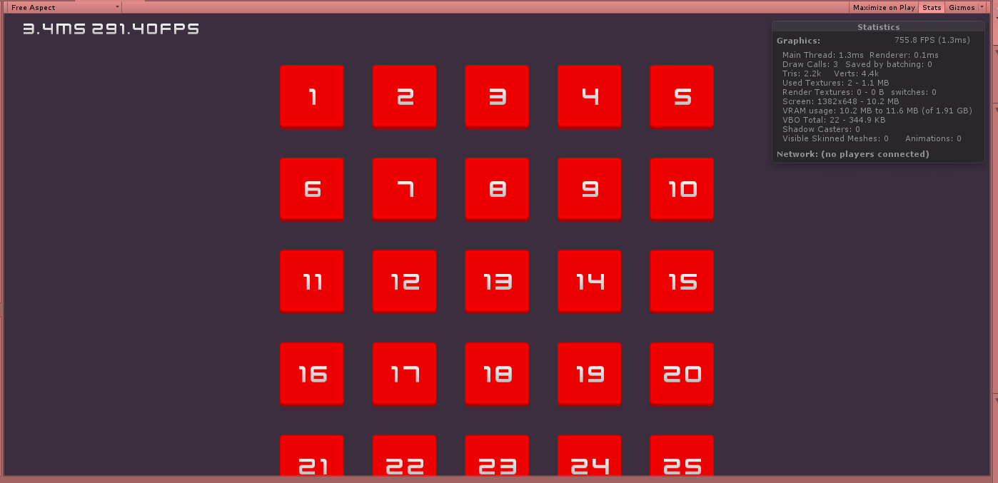 A bit bland, right? I plan to add progress stars and whatnot after I get persistent scores. From here on, my polish seems to fall apart again. I also have a Main Menu screen, but it’s just as ugly. However, it’s playable and functional at this point. A solid 60FPS on my tablet, which is quite an accomplishment.