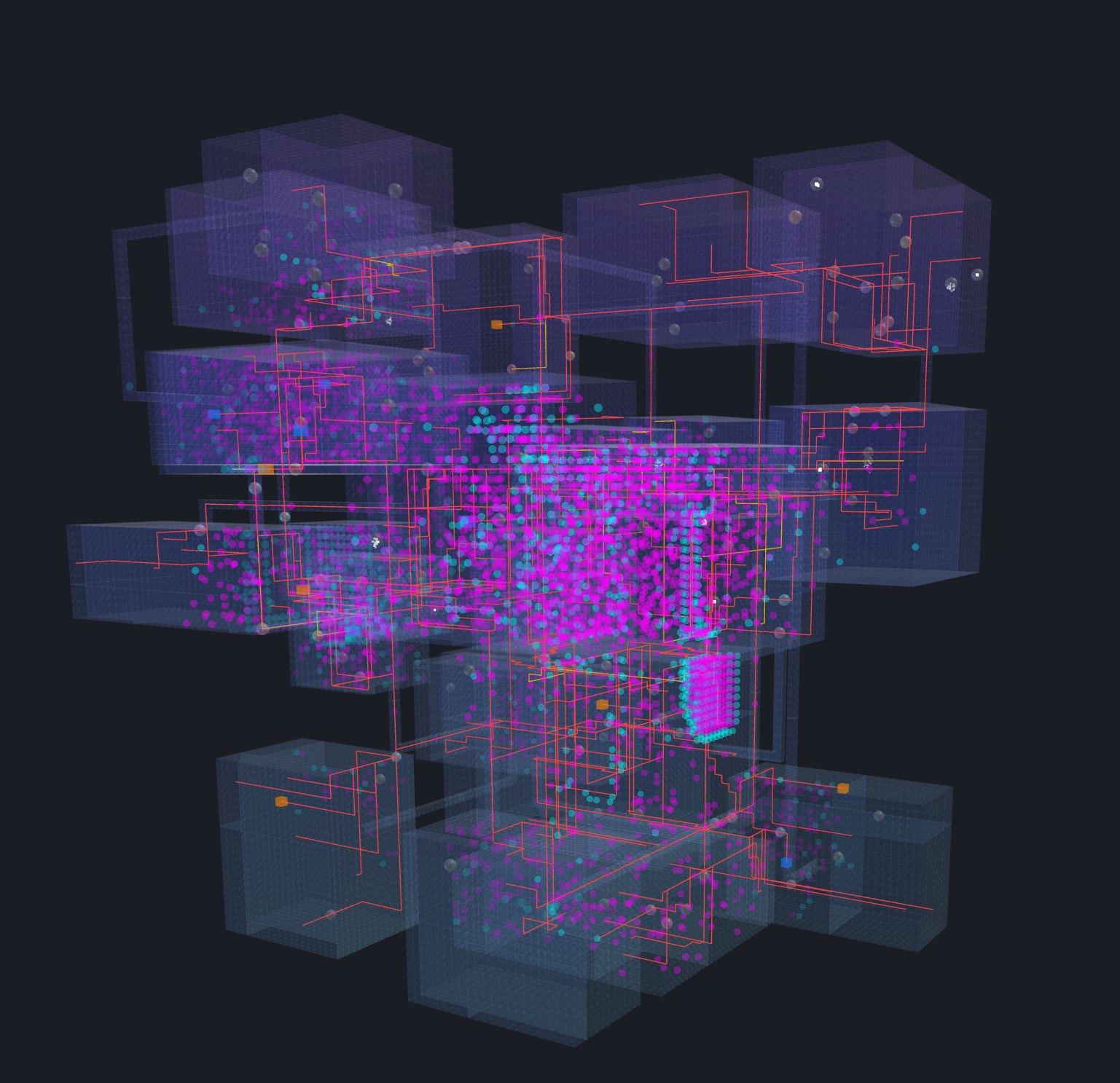 - Tech: Vanilla JS, Three.js, Web Workers, custom A* implementation (Min Heap), custom voxel world generation, complex shader based visualization.