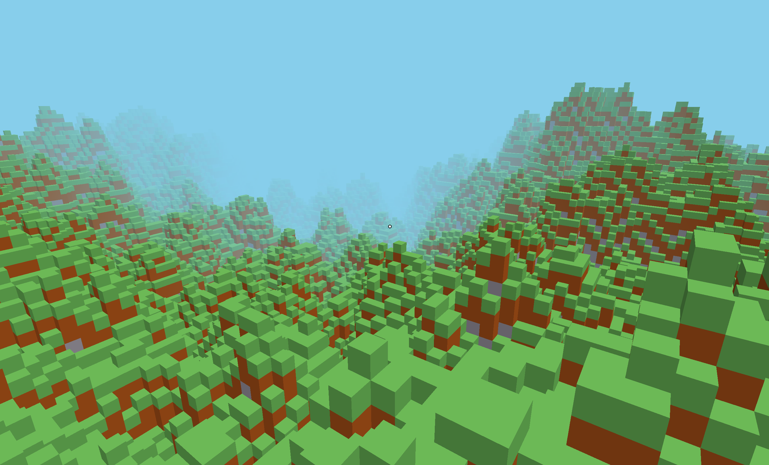 - Result: A first person demo in a procedural world generated with simplex noise. It features two movement modes: standard grounded FPS controls (walk/jump) and a free flying mode (toggle with F). It actually defaults to flying mode on start because a key goal was testing the performance of the chunk loading/unloading system, which uses Web Workers to avoid hitching the main thread. Flying around lets you cover ground quickly and really see how well the terrain streaming keeps up. Also includes basic ground collision (when walking) and a working day/night cycle affecting lighting and fog.