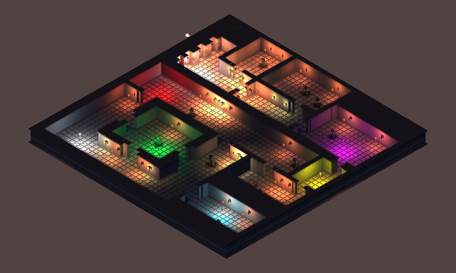 With atlased textures, I finally got everything working across rendering, lighting, and batching. The result? The entire scene in just one draw call.