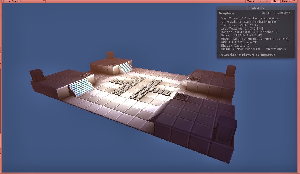 I tackled batching today and set up an automated script that integrates with my in-game level editor. So far, I’ve managed to keep the entire scene under three draw calls-under ten even with lighting!